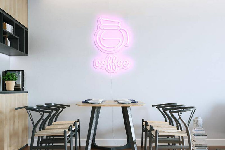 Mit der 'KAFFEE KANNE' Neonleuchte von NEONIDAS schaffen Sie eine warme und einladende Atmosphäre, die überzeugen wird. Perfekt für Cafés, Küchen oder Wohnzimmer – machen Sie aus Ihrem Raum einen Hingucker.